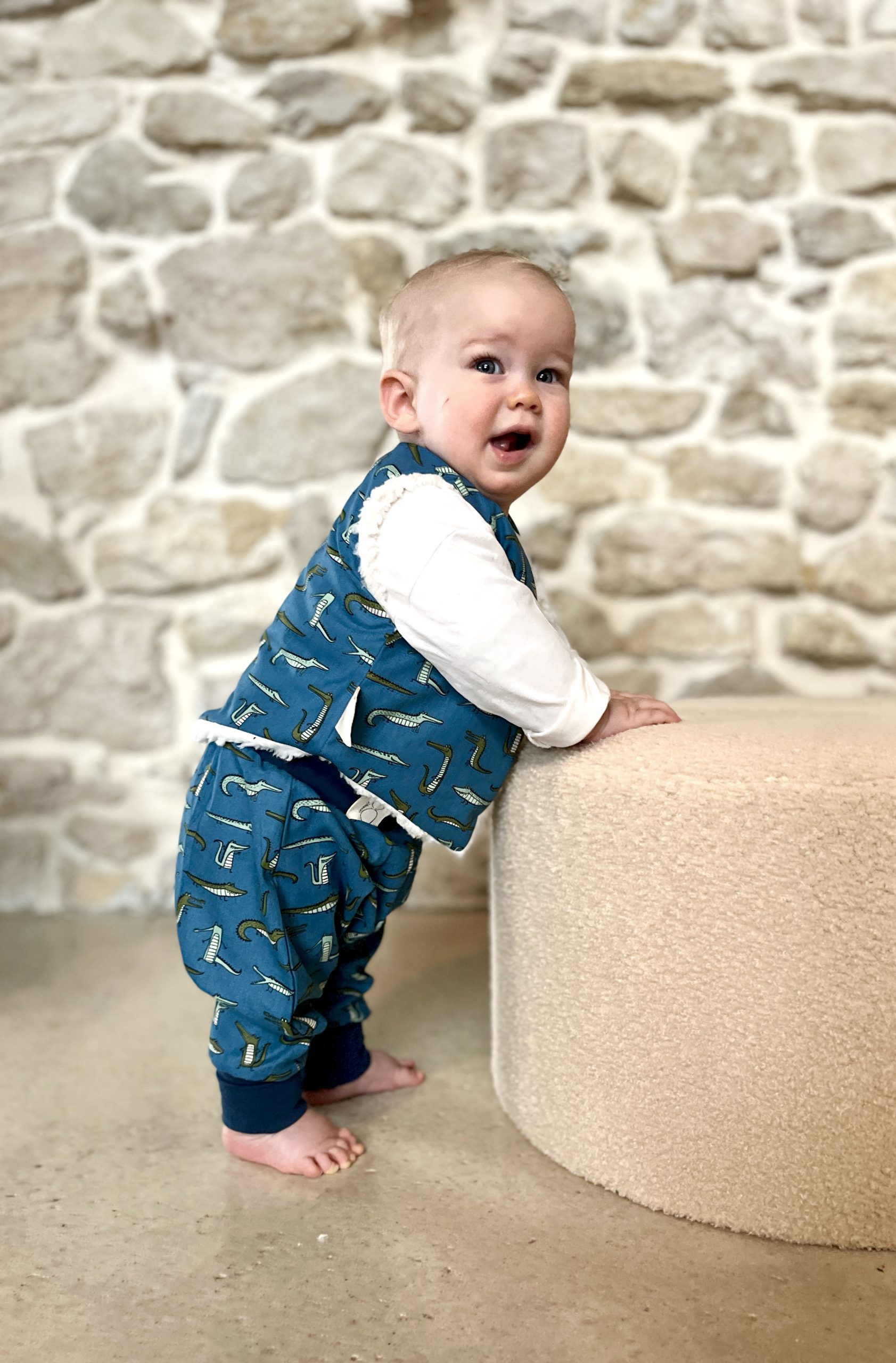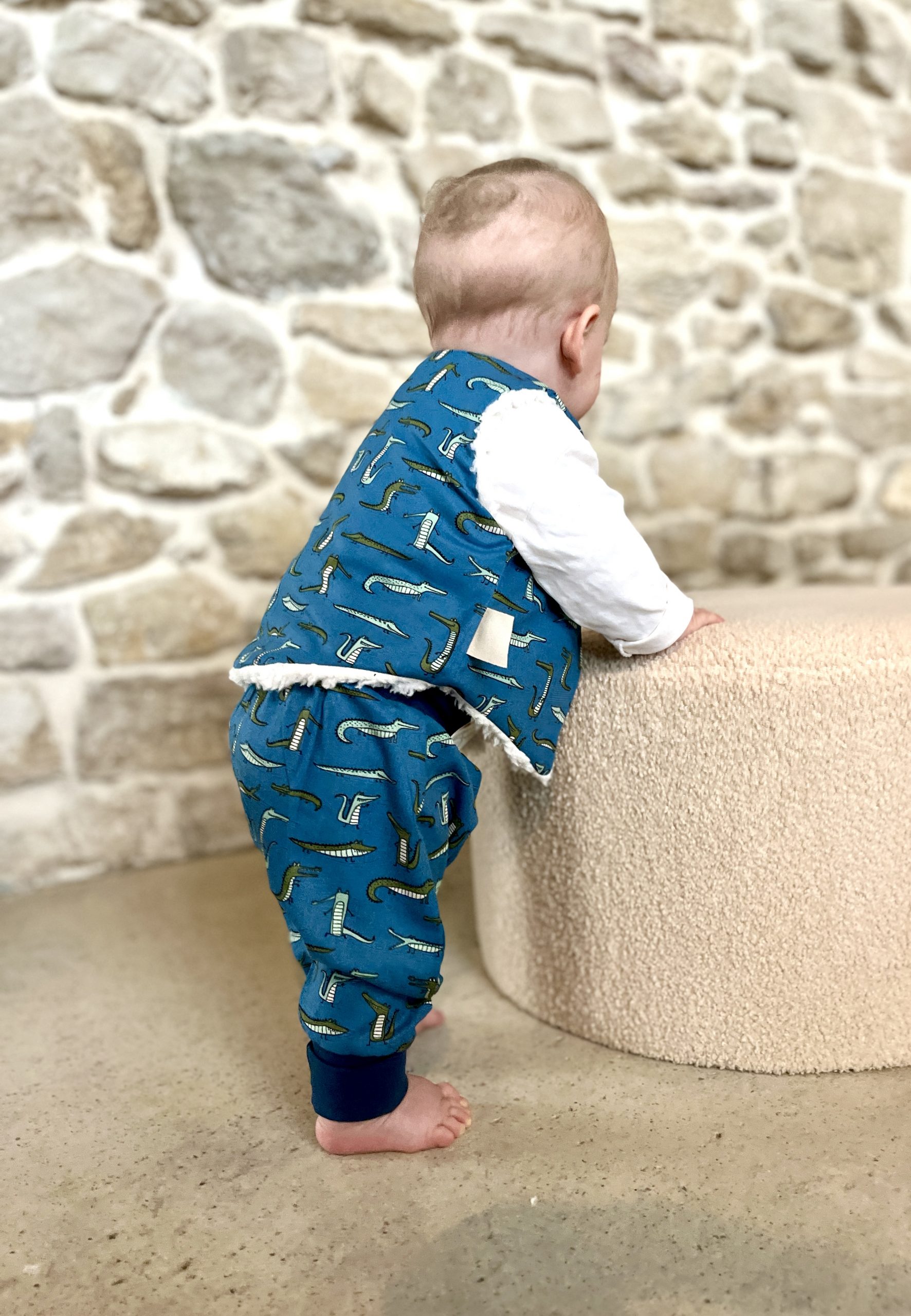 Le sarouel grandira en même temps que votre enfant grâce à sa taille et ses chevilles en jersey élastique et qui se plient et déplient.